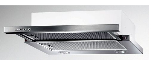 Rosieres RHT 650 IN. Maximum extraction power: 500 m³/h, Type of extraction: Ducted/Recirculating, Noise level: 65 dB. Type: Built-under cooker hood, Colour of product: Stainless steel. Grease filter type: Metal. Motor power: 140 W, Connected load: 180 W. Width: 598 mm, Height: 175 mm, Weight: 6.5 kg
