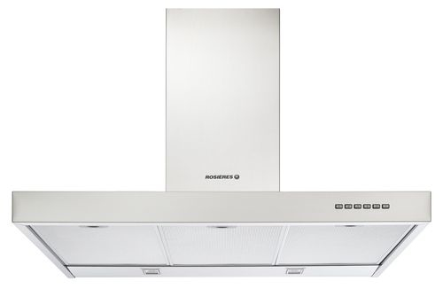 Rosieres RMB 9685 IN. Maximum extraction power: 860 m³/h, Type of extraction: Ducted/Recirculating, Maximum recirculating power: 790 m³/h. Type: Wall-mounted cooker hood, Colour of product: Stainless steel, Lamps quantity: 2 lamp(s). Grease filter type: Aluminium, Number of filters: 3 pc(s). Motor power: 250 W, Connected load: 290 W, Bulb power: 20 W. Width: 900 mm, Depth: 485 mm, Height (min): 66.5 cm