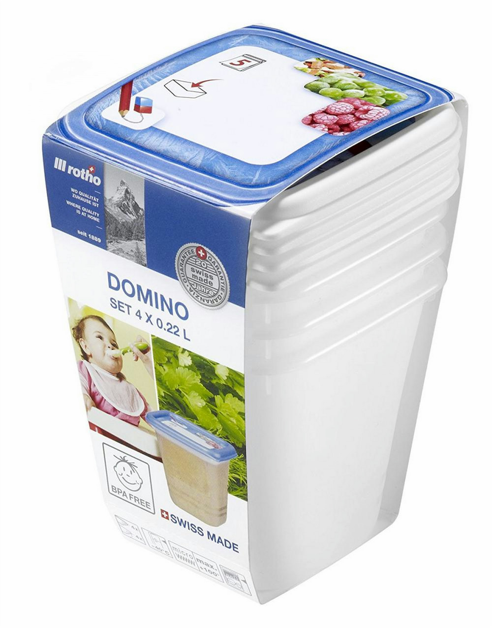 Rotho DOMINO. Colour of product: White. Width: 80 mm, Depth: 80 mm, Height: 115 mm. Quantity per pack: 4 pc(s)