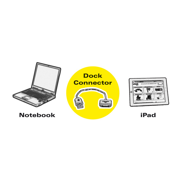 USB conenction cable for charging iPod, iPad or iPhone and transfering data to a PC/notebook