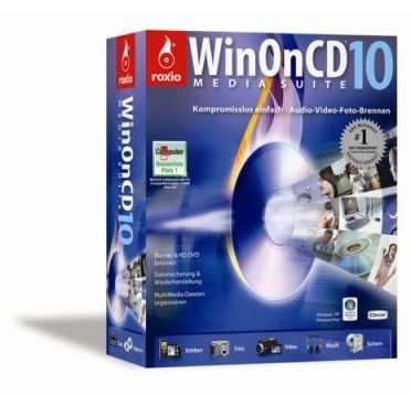 Roxio WinOnCD Media Suite 10. Software type: Box. Platform: PC, Media types supported: CD, DVD, HD-DVD, BD, Minimum processor: 500 MHz. Language version: German