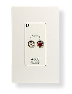 The A-LC2 Local Source Input allows you to connect a computer, CD player, or other audio source to the room speakers in an A-BUS zone. It automatically selects the connected source when it senses an audio signal. You can then use the room keypad or volume control to adjust the speaker volume while playing the local source, just as you would while listening to a source through the main A-BUS system.
