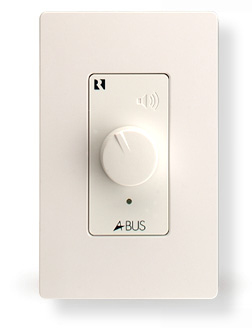 The A-VC2 Amplified Volume Control is a simple, economical control for an A-BUS multiroom system. A single knob provides zone volume adjustment and on/off. An LED lights up to indicate when your audio source equipment is on.