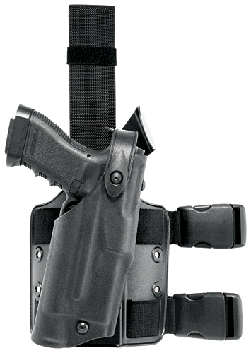 The Safariland Model 6304 Tactical Holster includes all the features of the popular 6004 Tactical holster with the addition of SAFARILAND's exclusive Automatic Locking System (ALS). The Safariland 6304 also includes a Tactical finish which protects the gun in scrape, scratch and dent incidents while the SafariSuede lining help protect the sight and finish. The key to comfort and stability of the Model 6304 is the double leg strap and the leg shroud.