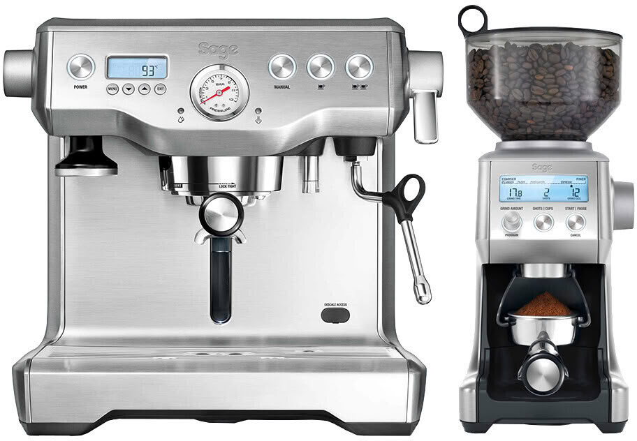 Scope of delivery: Stainless steel milk jug, cleaning set, water hardness test strips, water filter cartridge, portafilter, tamper, set consists of the Dual Boiler portafilter machine & the Smart Grinder Pro coffee grinder