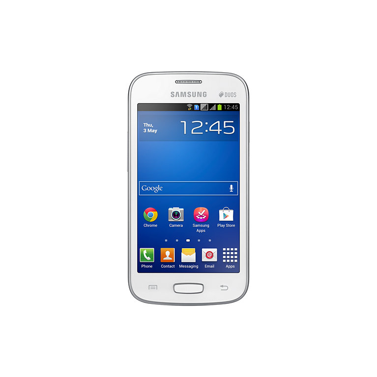 Samsung Plus, Galaxy. Display diagonal: 10.2 cm (4"), Display resolution: 480 x 800 pixels, Display type: TFT. Processor frequency: 1 GHz, Processor architecture: ARM Cortex-A5. Internal storage capacity: 4 GB, Compatible memory cards: MicroSD (TransFlash), Maximum memory card size: 32 GB. Rear camera resolution (numeric): 2 MP, Maximum frame rate: 15 fps. SIM card capability: Dual SIM, 2G standards: EDGE, GSM, Wi-Fi standards: 802.11b, 802.11g, 802.11n
