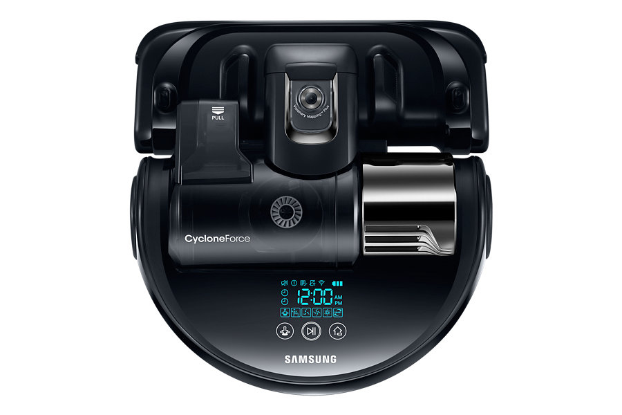 Samsung POWERbot VR9000. Dust container type: Bagless, Dust capacity (total): 0.7 L, Colour of product: Black. Noise level: 78 dB, Cleaning speed: 320 mm/sec, Vacuum cleaner programs: Auto, Manual, Max, Spot, Turbo. Battery technology: Lithium-Ion (Li-Ion), Battery voltage: 21.6 V, Charging time: 2.6 h. Height: 135 mm, Width: 378 mm, Depth: 362 mm. Package width: 475 mm, Package depth: 526 mm, Package height: 188 mm
