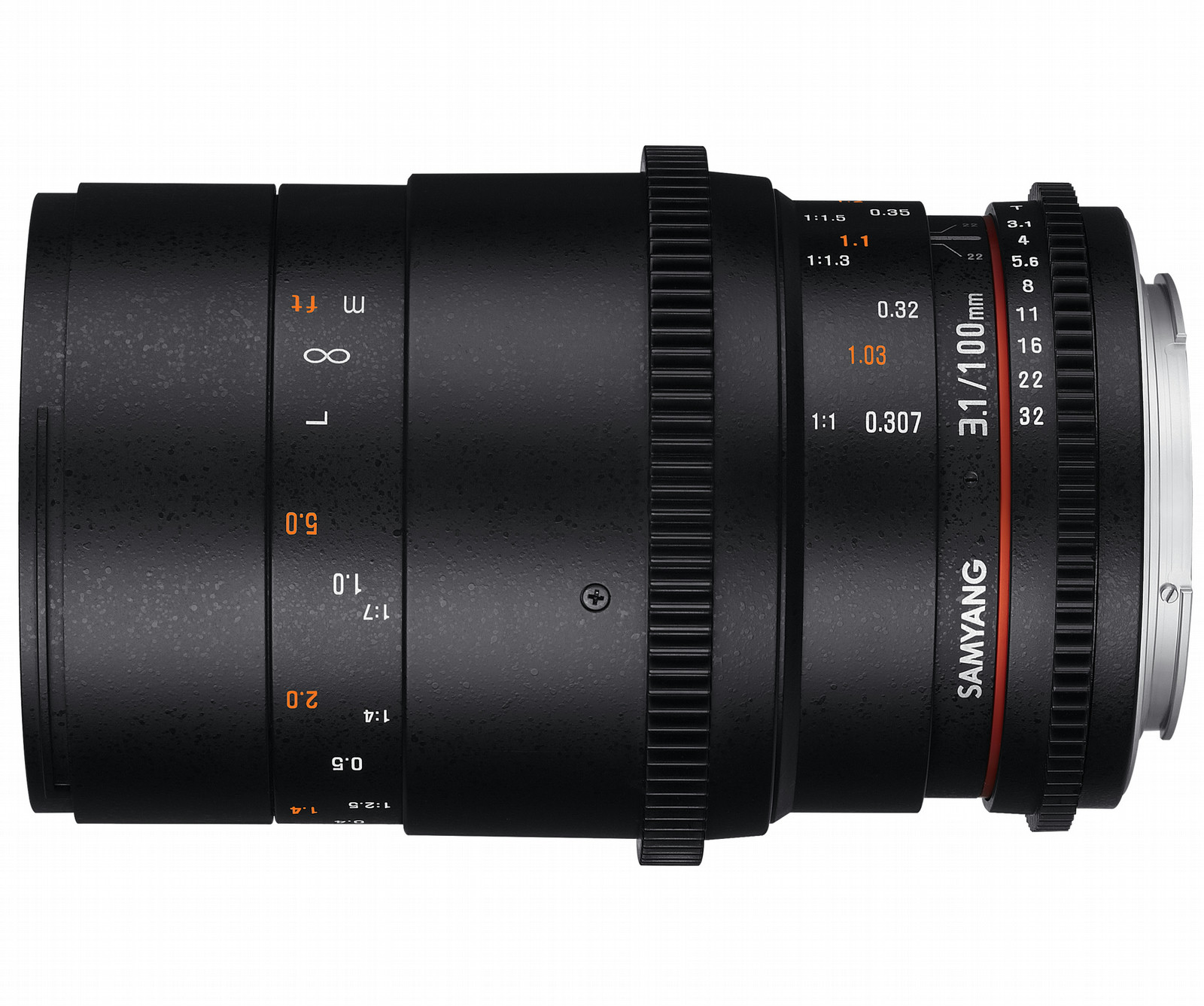 Samyang 100mm T3.1 VDSLR ED UMC MACRO is one of Samyang Optics VDSLR II Cine Lens Line Up for full frame image sensor sizes. The lenses produce the same image color and have a united location of aperture and focus gear ring to maximize the convenience when filming.
