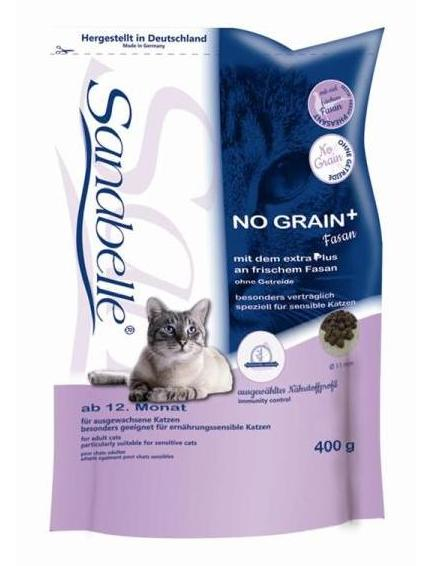 Sanabelle NO GRAIN Pheasant with the extra advantage of fresh poultry (min. 20%) and fresh pheasant (min. 6 %) as an important source of protein is manufactured without cereals containing gluten.