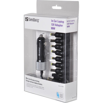 The Sandberg In Car Laptop 12V Adapter 90W allows you to power your laptop while you are travelling in a car. This means you can be sure that you won’t run out of charge while you’re on the move. The connector from the power supply can be adapted to fit your laptop by swapping it with one of the many connector types enclosed.
