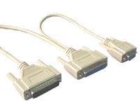 This universal cable is used to connect a modem with a 25-pin female connector to either type of COM port, 25-pin or 9-pin. Note that only one of the female connectors should be connected.