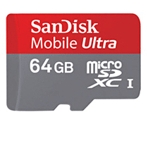 Get faster performance and maximum storage for your photos, apps and Full HD† videos. With 64GB capacity and transfer speeds up to 30MB/s, SanDisk® Mobile Ultra™ microSDXC™ memory cards are perfect for the latest microSDXC™-enabled high-performance smartphones and superphones – plus the included SD™ adapter lets you quickly transfer files from your PC or other SD™ enabled device – so you can get more out of your mobile device. Do more with SanDisk® mobile memory cards