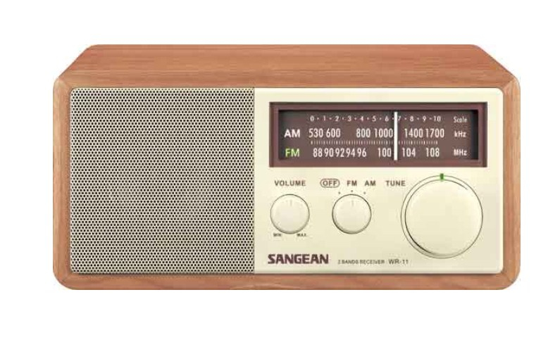 Elegant simplicity combined with state-of-the-art performance sets the Sangean Model WR-11 AM/FM Table Top Radio head and shoulders above its closest competition. In true Sangean tradition AM/FM reception is excellent providing clear and static free listening. Only three dials adjusts volume, selects AM/FM bands and precisely tunes your station selection displayed in a softly lighted analog display. An LED tuning eye assures your tuning the best reception for your selected station. In addition a stereo headphone jack and provision for an external AM and FM antenna are also provided. Aux-in jack for playing your favorite MP3 and Rec-Out jack for routing to your recording equipment or external devices. Available in attractive light colored, wood veneered cabinet with complementary metal speaker grill.