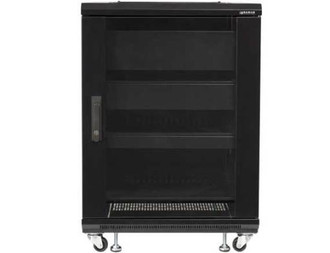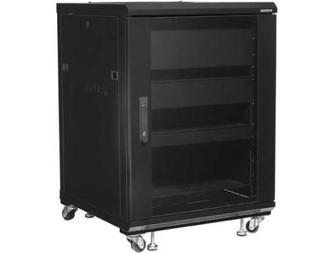 SANUS Component Series CFR2115 AV rack can support up to 500 lbs of AV gear. It comes pre-assembled with blanking panels and vented shelves, which include back stops to ensure AV equipment does not move during use. Quick-release back and side panels allow complete and total access to components and wiring. The rack has two 3U cut-out openings on both top and bottom of the rack as well as a removable 3U panel that can be located above or below the rear rack door for added venting or active cooling flexibility. Swivel casters and adjustable feet allow mobility and stable positioning, and cooling vents on the top and bottom of the rack ensure all equipment stays at the ideal temperature. The CFR2115 comes with additional accessories to gang racks together and to make the side panels lockable.