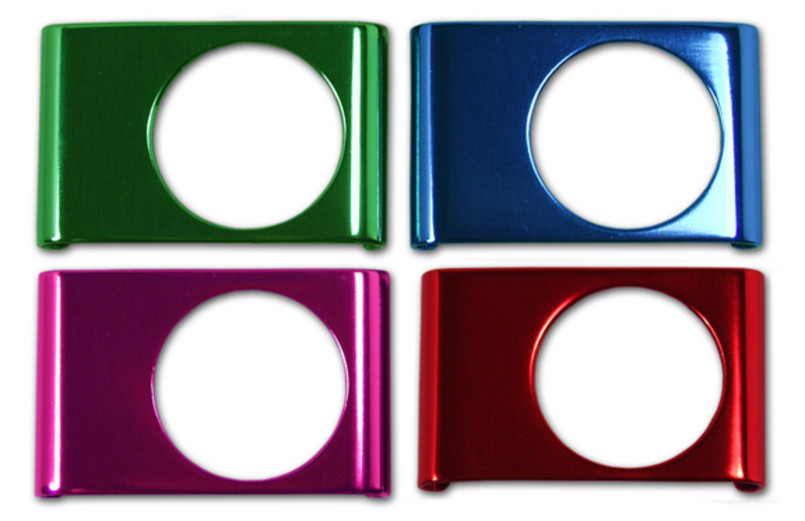 iPod Shuffle aluminum accents - Red, Green, Blue, Pink - 100% anodized aluminum cover compliments your new 2G Shuffle wherever you go
