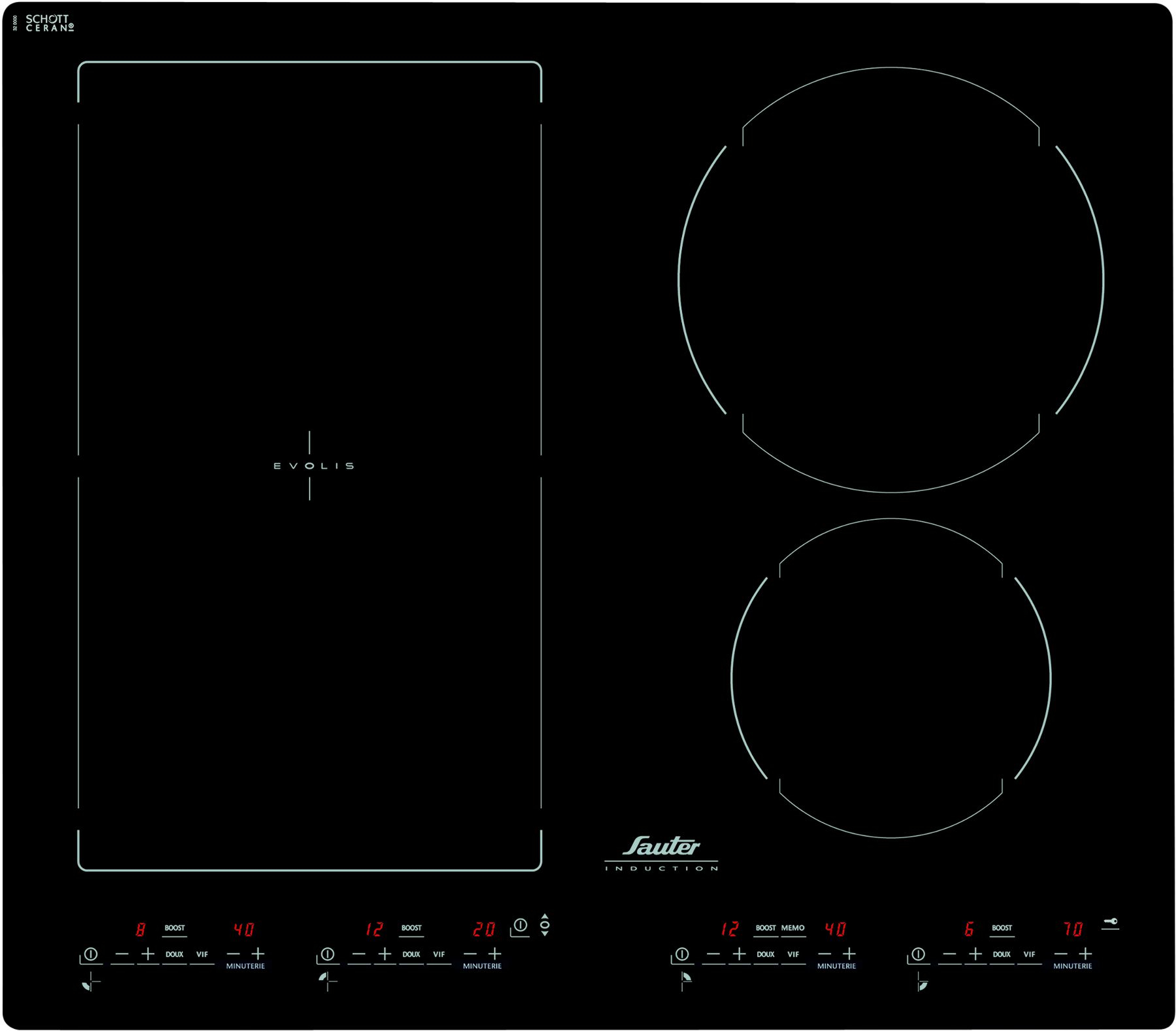 Sauter STIN84B. Case design: Built-in, Hob type: Induction hob, Top surface type: Glass-ceramic. Control type: Touch, Control position: Top front. AC input voltage: 220 - 240 V