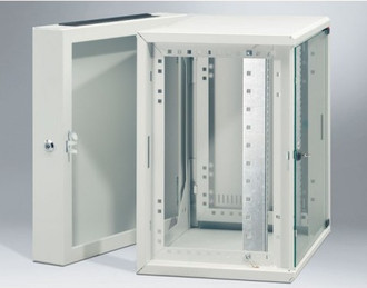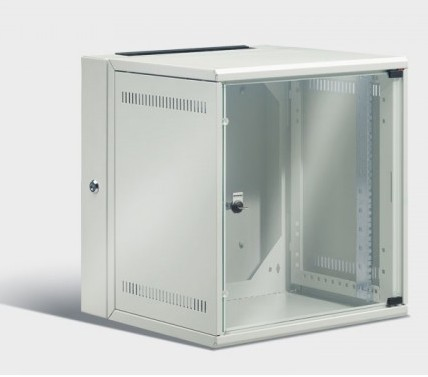 Mounted ready for installation, glazed door at front, inc. lock, central swivel mounting frame with 482.6 (19") mounting angles at front, cable entry apertures in top and bottom.
