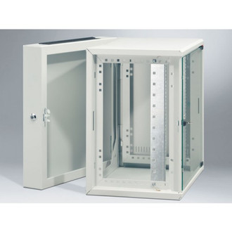 Mounted ready for installation, glazed door at front, inc. lock, central swivel mounting frame with 482.6 (19") mounting angles at front, cable entry apertures in top and bottom