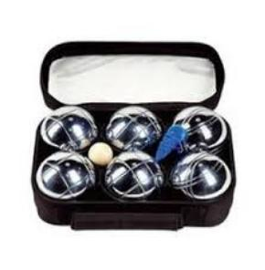 6 balls (Ø 7,25cm), 1 target ball, 23 x 16 x 8 cm case 6 full size chrome-plated steel bowls, (Ø 7,25cm), 1 wooden target ball (the jack), 1 measuring tape, in a