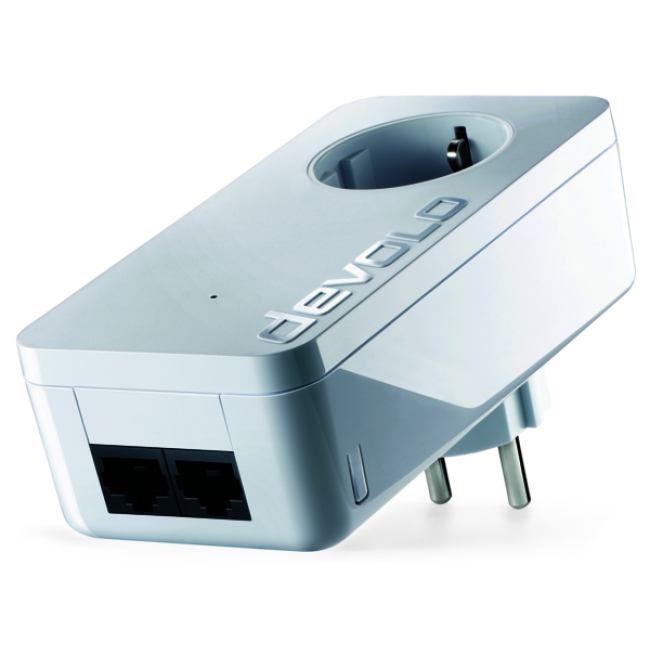 In its new design, the dLAN 550 duo+ conceals the most innovative Powerline technology and makes your home network even more multimedia-based. The fast transfer rate (500 Mbit/s) allows you to experience entertainment at the highest level. The range+ technology provides a steadier internet connection with a significantly wider range. No power outlet goes to waste: this adapter comes with an integrated power outlet and also offers two Fast Ethernet ports for two terminal devices.