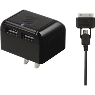 The included USB 2.0 charge and sync cable works with iPod, iPhone, iPad, Android devices, Smartphones or Tablets. An integrated sliding adapter allows you to use this 2-in-1 cable to charge 30 pin or micro USB devices.