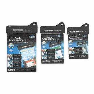 This waterproof accessory case is exceptionally resistant to the demands of the trail or the river. The TPU material is durable, flexible and resistant. Fully welded construction with die-cut corner anchor points and neck strap. The top closure folds the tacky TPU film against itself three times and then secures this with double Velcro - waterproof enough for brief submersion for electronics.
