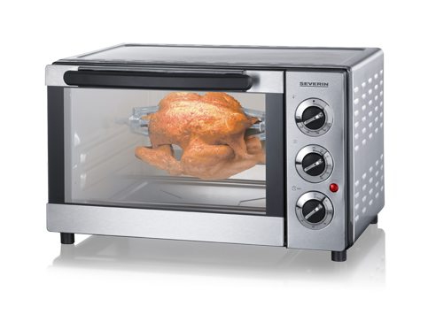 Severin TO 2037. Oven type: Electric oven, Total oven(s) interior capacity: 19 L, Thermostat range (1st oven): 100 - 230 °C. Colour of product: Stainless steel, Baking tray dimensions: 295 x 255 mm. Bulb power: 1300 W. Width: 440 mm, Depth: 380 mm, Height: 270 mm
