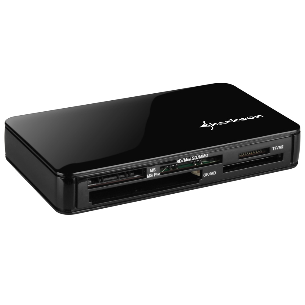 The external USB3.0 card reader comes in a decent black housing and supports the most common memory card formats such as SD(HC), SDXC, MMC, MS and CF.