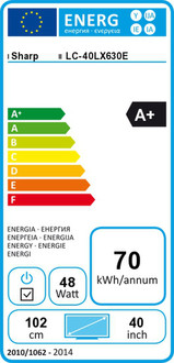 Sharp LC-40LX630E. Display diagonal: 101.6 cm (40"), HD type: Full HD, Display resolution: 1920 x 1080 pixels. Analog signal format system: NTSC,PAL,SECAM, Digital signal format system: DVB-C,DVB-T, Tuner type: Analog & digital. RMS rated power: 10 W, Subwoofer RMS power: 10 W. Video formats supported: H.264,MPEG4. VESA mounting interfaces: 400 x 400 mm