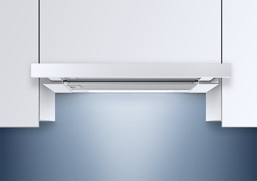 SIBIR 509704. Maximum extraction power: 647 m³/h, Type of extraction: Ducted/Recirculating. Type: Semi built-in (pull out), Colour of product: White. Grease filter type: Metal, Number of filters: 2 pc(s). Energy efficiency class: A, Motor power: 120 W. Installation compartment width: 55 cm