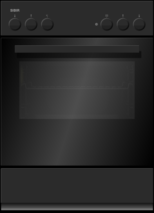 SIBIR Diplomat. Oven size: Medium, Oven type: Electric oven, Total oven(s) interior capacity: 56 L. Colour of product: Black, Control type: Rotary, Control position: Top front. Energy efficiency class: A. Width: 548 mm, Depth: 569 mm, Height: 760 mm