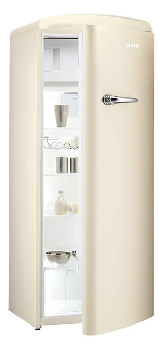SIBIR Oldtimer OT 272. Case design: Freestanding, Colour of product: Cream, Door hinge: Right. Total net capacity: 281 L, Climate class: SN-T, Noise level: 42 dB. Fridge net capacity: 255 L, Lamp type: LED. Freezer position: Top-placed, Freezer net capacity: 26 L, Freezing capacity: 2 kg/24h. Energy efficiency class: A++, Connected load: 90 W, Annual energy consumption: 196 kWh