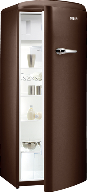 SIBIR Oldtimer OT 272. Case design: Freestanding, Colour of product: Chocolate, Door hinge: Right. Total net capacity: 281 L, Climate class: SN-T, Noise level: 42 dB. Fridge net capacity: 255 L, Lamp type: LED. Freezer position: Top-placed, Freezer net capacity: 26 L, Freezing capacity: 2 kg/24h. Energy efficiency class: A++, Connected load: 90 W, Annual energy consumption: 196 kWh