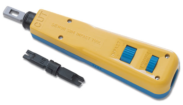 110 termination blade for use with S814 impact tool The S814 impact tool terminates wires on 66 and 110 clips. The tool is spring-loaded and fully adjustable; a helpful feature when working with wires of varying thicknesses. The bayonet-style mount allows the blades to be changed quickly and easily, and a compartment in the handle stores an extra blade.