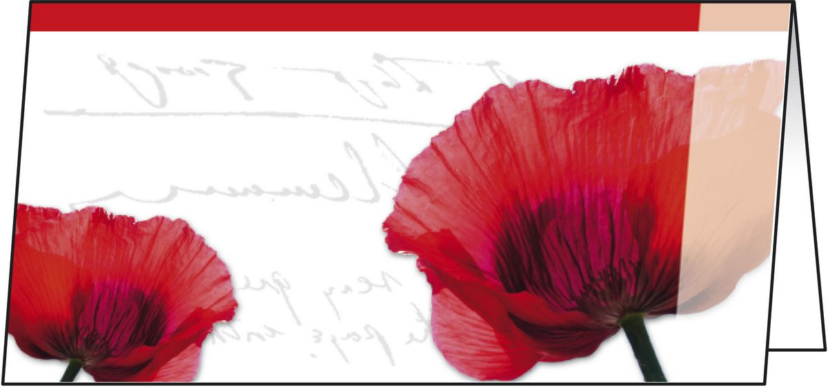 Motif cards, "Fiori", with a red poppy motif. The cards are extremely versatile, e.g. for invitations, thank-yous, birthday greetings etc. The 220 gsm cards are suitable for printing with inkjet and laser printers and copiers. Box contents: 25 DL cards.