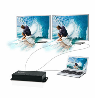 Distribute one HDMI source signal to two monitors simultaneously without signal data loss