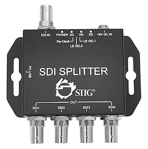 SIIG’s 1x4 3G-SDI Splitter replicates and distributes 3G-SDI signals from one SDI source to four SDI outputs. It operates at 270Mb/s, 1.485Gb/s and 2.97Gb/s data transfer rates and supports 525i and 625i SD format. Its metal housing provides better RF shielding for crystal clear data transmission, and efficient heat dissipation for durability and long life. The 1x4 3G SDI Splitter supports up to 8 channels of S/PDIF or I2S serial digital audio output at 48kHz sampling. This 3G SDI splitter is the easiest and most efficient solution for transmission of digital video and audio signals from a single SDI source to multiple high definition displays making video and audio more affordable and accessible.