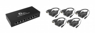 - Transmits VGA video and stereo audio transmissions to 8 (max) remote displays over economical CAT5/5e/6 cables