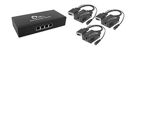 The SIIG VGA 3-Display Native Extender Kit is designed for digital signage environments requiring multiple displays, where the audience is decentralized in multiple area locations. This kit includes a 4-Port VGA & Audio Transmitter and three VGA & Audio Receiver units to enable A/V signal distribution to 3 LCDs or display monitors. With this kit, you can reliably duplicate and extend your high-definition analog signal with stereo audio over economical CAT5e/6 from a VGA source to multiple VGA displays in different locations.