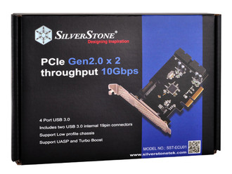 The SilverStone ECU01 is the world’s first PCI-E Gen 2.0 x2 expansion card with two internal 19pin USB3.0 connectors. With its 10Gbps bandwidth, it offers more stable and faster transfer rate when multiple external USB devices are in use simultaneously.