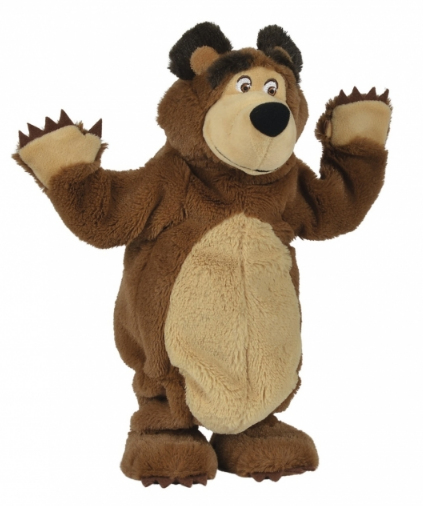 Press the left hand of Misha from the series “Masha and the Bear” and he will dance and move his hands to an original song from the series. He is 32 cm tall and is suitable for children aged 3 years and over. 3 x 1.5V R6 batteries are included.