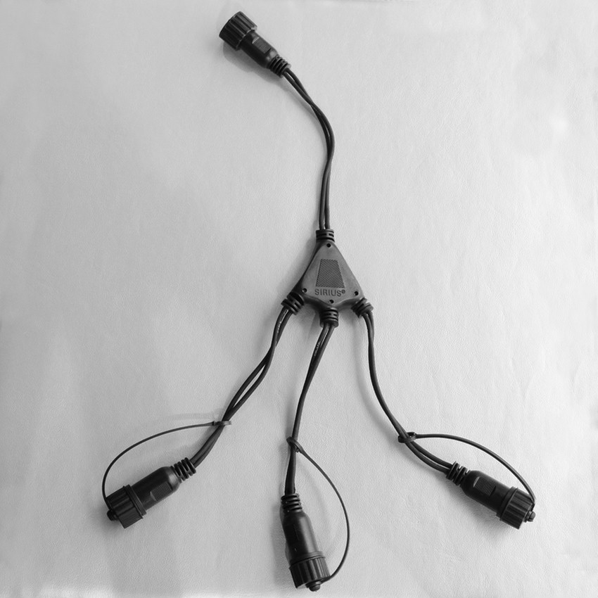 Tech-Line 3-Split: 35cm With Sirius Tech-Line split, you can connect up to 3 chains, nets, curtains, or robes from the Tech-Line Serie. You can now easily split your Christmas decorations up in different directions. Designed by Sirius Company. Approved for outdoor use.