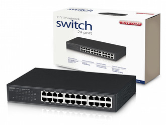 The 11”/19” Network Switch 24 ports makes it possible to connect 24 office users or devices to the network and allows files and peripherals to be easily shared between all the connected users. It offers 24 ports with a guaranteed transfer speed up to 10/100 Mbps and up to 1.25M bits buffer. This Network Switch can be easily mounted in a 19” rack via the included brackets. Since it has a built-in power there is no need for an additional adapter.