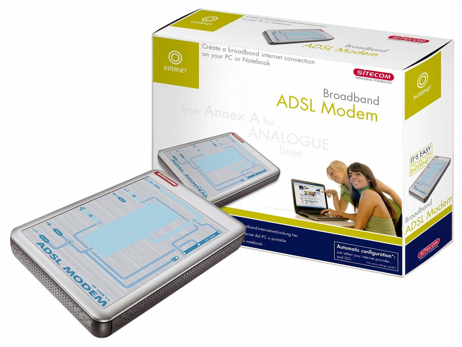 Use this ADSL modem to set up a lightning-fast broadband Internet connection over ADSL. The ADSL modem can be connected to a PC or a network via USB or via a UTP network cable. This dual connection means the ADSL modem is suitable for use in conjunction with a router for sharing the Internet or for use with a single PC (via USB so no network card is required).