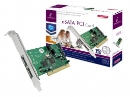 By installing this eSATA PCI Card in your desktop PC, you have immediate access to 2 high speed eSATA connections for external Serial ATA storage equipment and 2 internal SATA connections. Because the Serial ATA standard enables a transfer speed of up to as much as 150 MB per second, optimal ease of use is guaranteed. Certainly if you use large files, such as music and films, copying and saving become as simple as anything, and watching and listening become extremely comfortable!