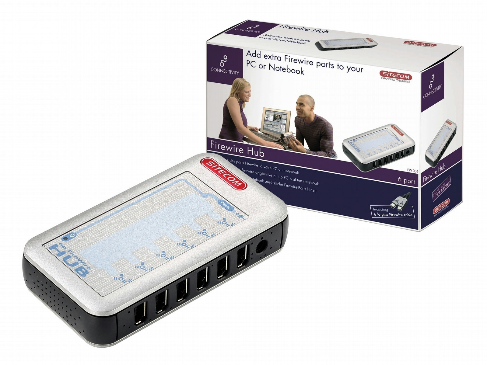 Add 5 extra Firewire ports by connecting this Firewire hub to the Firewire port on your PC or notebook. Thanks to speeds of 400 Mbps, Firewire is ideal for video editing and backup devices.