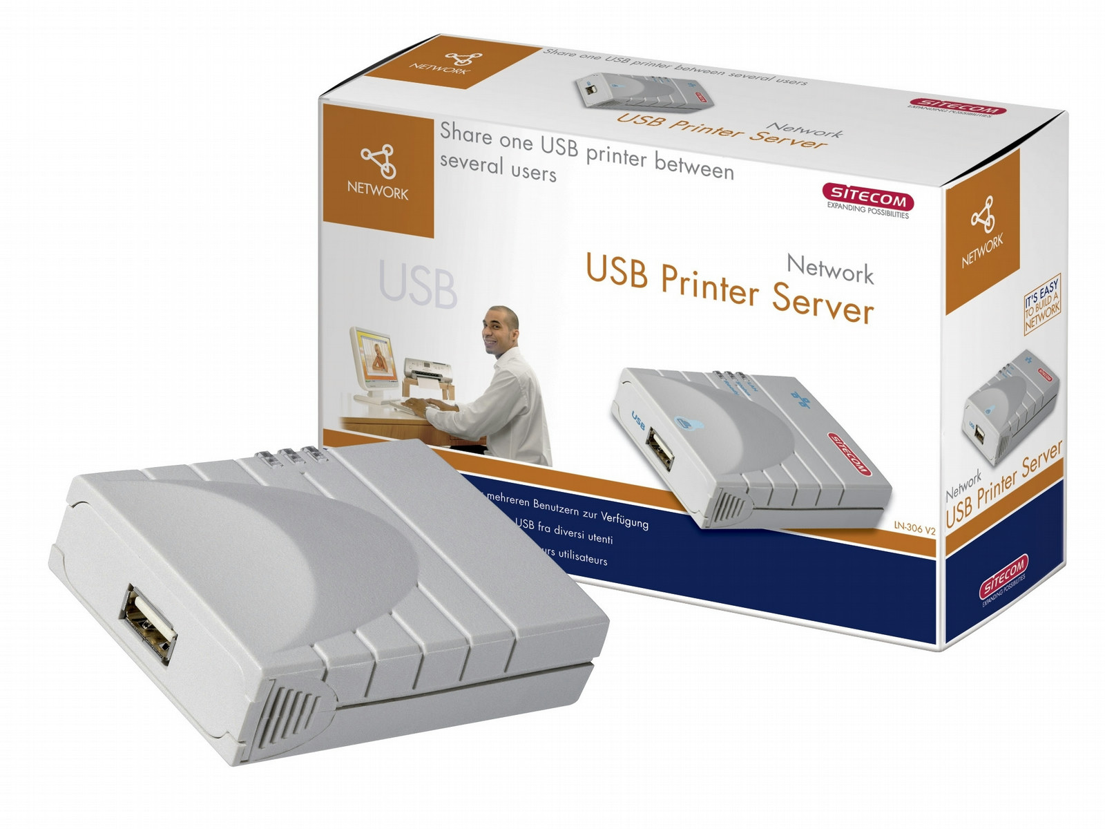 This Network Printer Server makes it possible for you to add a USB printer to your network simply and quickly. This printer can then be used by any user from different computers in the network. The Network Printer Server is fitted with a network port (10/100 Mbps) so that you can connect it to any network device such as a hub, switch or a network card. Thanks to the supplied Wizard, the printer server is easy to install and because it supports the most important protocols, the printer server can be easily integrated in almost any network.