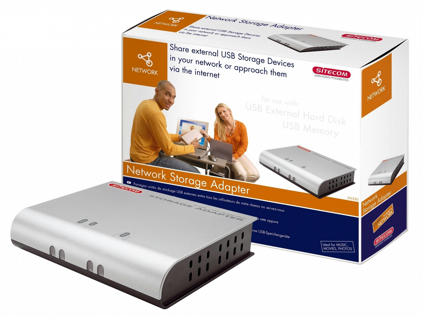 Using this Network Storage Adapter, it is extremely simple to share two external USB hard disks and/or flash disks with all the other PC’s in your network. The integrated ftp server also makes it possible to manage and edit data on the storage media connected via an Internet connection. Sharing an external hard disk and/or flash disk has never been so simple!