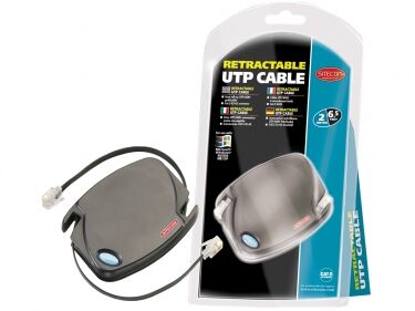 The Retractable UTP cable accommodates in its compact housing a ready-for-use UTP cable. At the press of a button the cable coils up again automatically, so that at all times you will have at your disposal a cable without kinks and twists. Thanks to its compact dimensions you can store the Retractable UTP cable safely and easily, and carry it along with you in your laptop bag or in a case. In this way, when away from your place of work, you will always have a UTP cable at hand. Ideal for use in, for example, hotels.