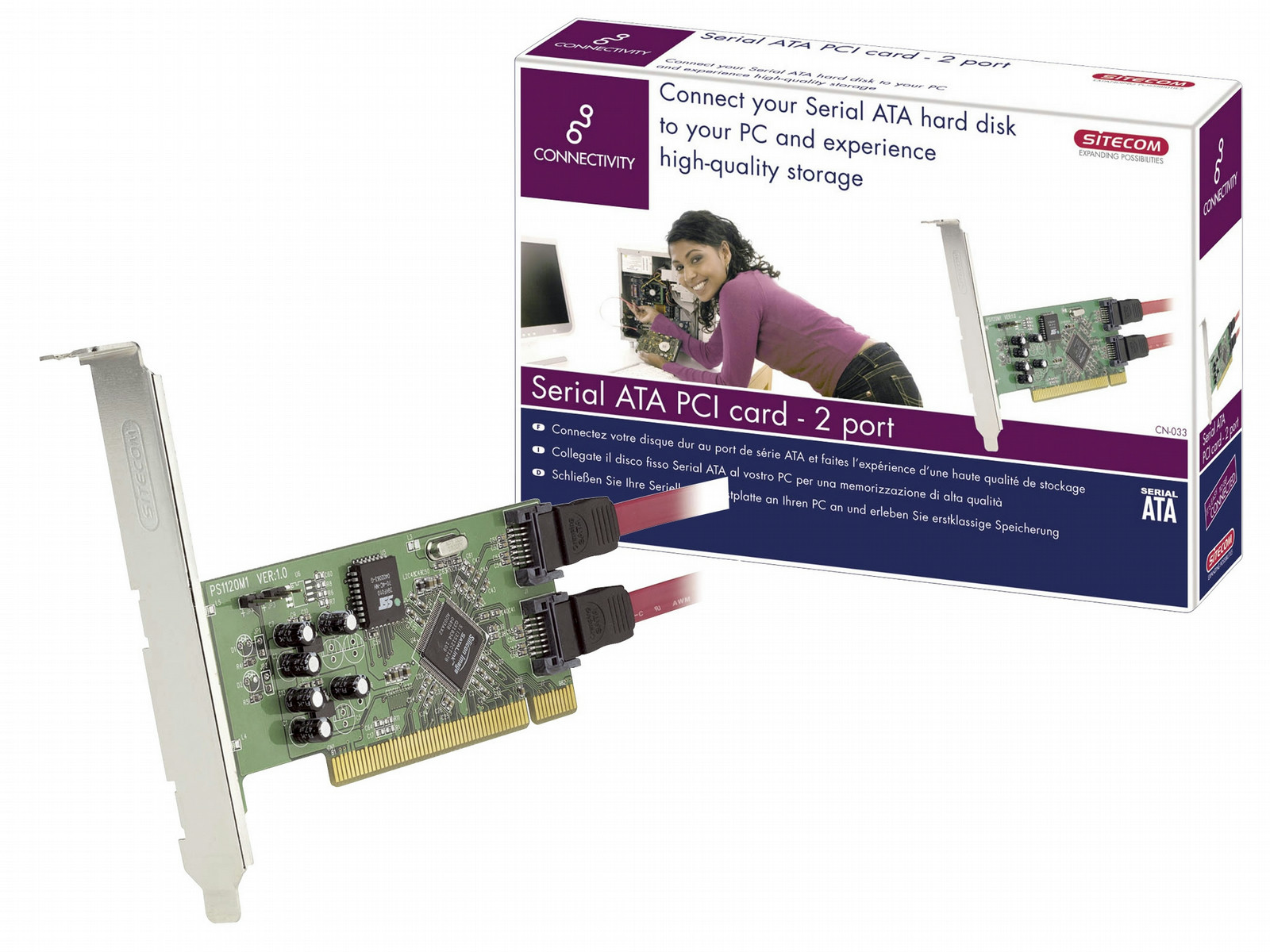 Install this serial ATA PCI card in your PC to add two serial ATA connections in an instant for reliable fast data transfer to and from your hard disk.
